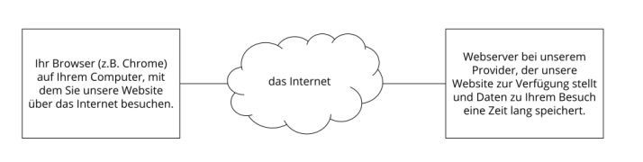 Ein Bild sagt mehr als tausend Worte, daher zeigt folgende Grafik zur Veranschaulichung das Zusammenspiel zwischen Browser, dem Internet und dem Hosting-Provider.